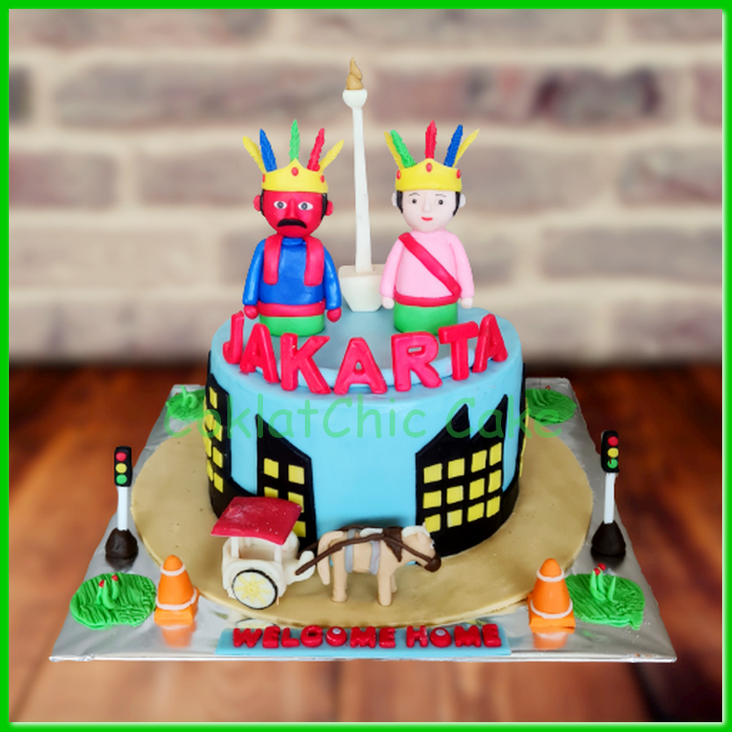 Birthday Cake dengan tema ondel-ondel dan delman di Monas, model tersebut mulai ukuran 15 cm , daftar harga kue ulang tahun https://coklatchiccake.com/daftar-harga-2