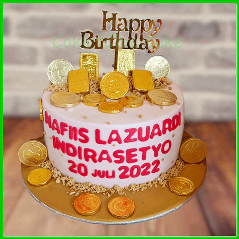 Birthday Cake pulling money dengan tema gold, model tersebut mulai ukuran 15 cm , daftar harga kue ulang tahun https://coklatchiccake.com/daftar-harga-2