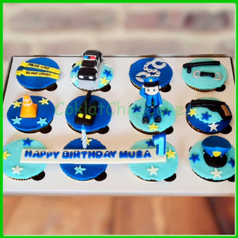 Birthday Cupcake set dengan tema Polisi , daftar harga kue ulang tahun https://coklatchiccake.com/daftar-harga-2
