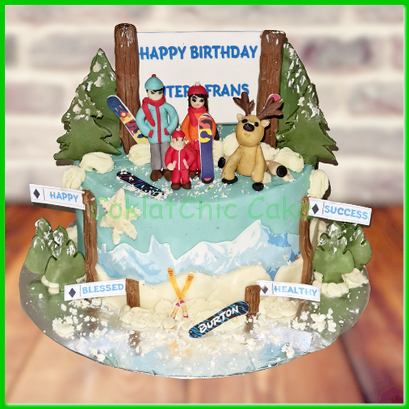 Birthday Cake dengan tema gunung salju, model tersebut mulai ukuran 18 cm , daftar harga kue ulang tahun https://coklatchiccake.com/daftar-harga-2
