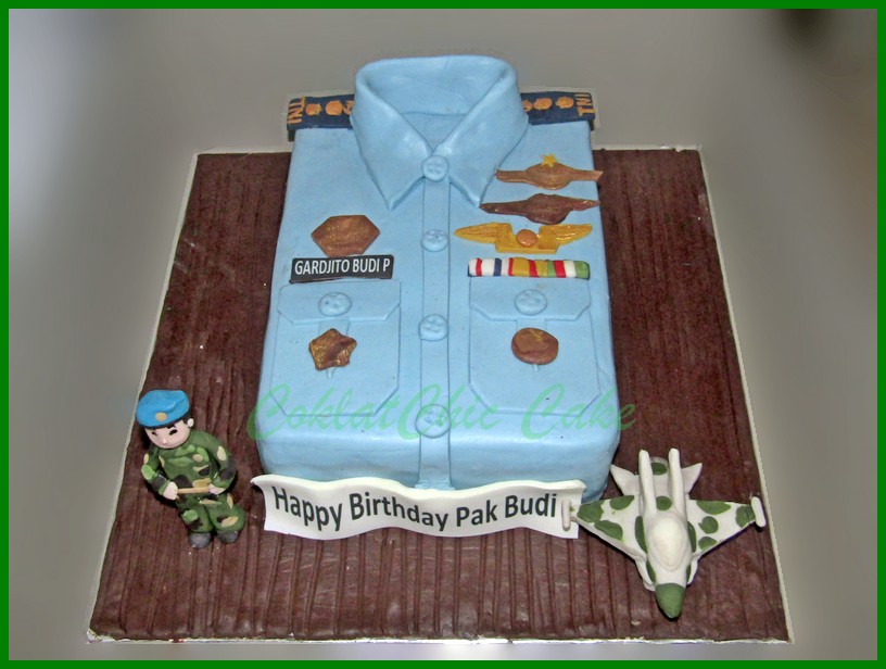 Birthday Cake dengan tema Baju Tentara , model tersebut mulai ukuran 15 cm , daftar harga kue ulang tahun https://coklatchiccake.com/daftar-harga-2