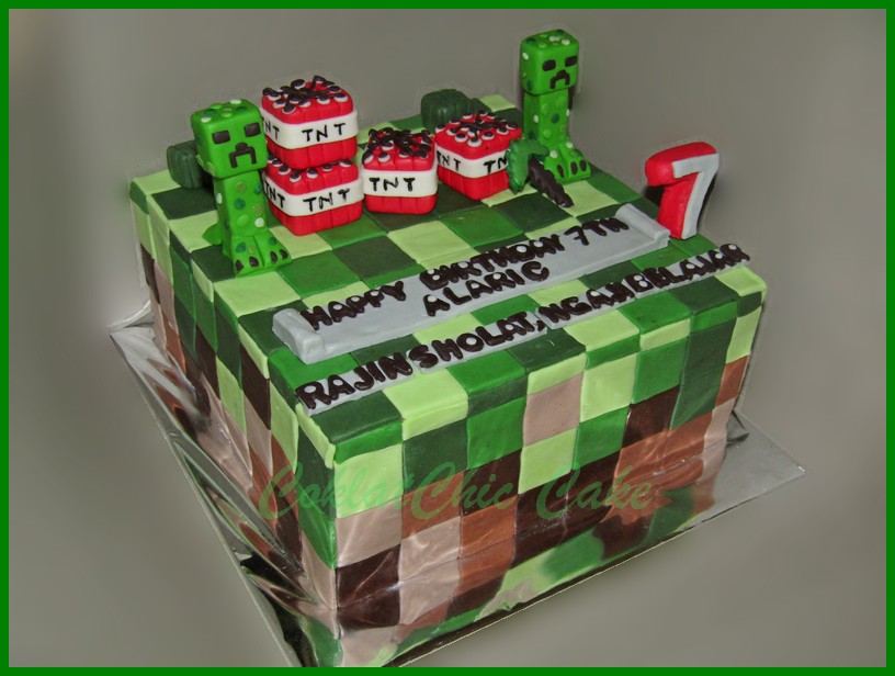 Birthday Cake dengan tema Minecraft , model tersebut mulai ukuran 20 cm , daftar harga kue ulang tahun https://coklatchiccake.com/daftar-harga-2