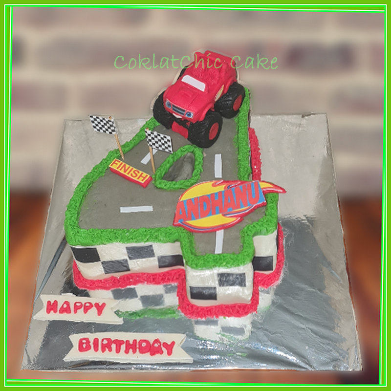 Birthday Cake angka dengan tema Blaze the monster machine, model tersebut mulai ukuran 15 cm , daftar harga kue ulang tahun https://coklatchiccake.com/daftar-harga-2