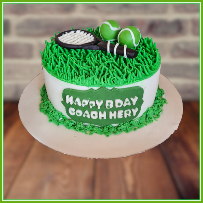 Birthday Cake dengan tema olah raga tenis, model tersebut mulai ukuran 18 cm , daftar harga kue ulang tahun https://coklatchiccake.com/daftar-harga-2