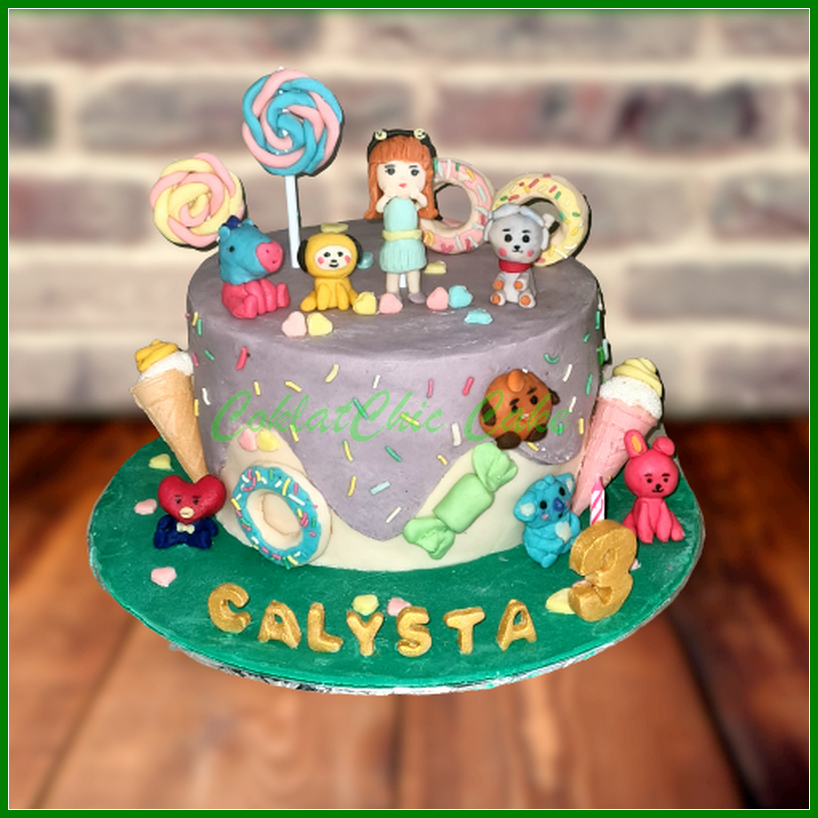 Birthday Cake dengan tema BT21, model tersebut mulai ukuran 18 cm tinggi, daftar harga kue ulang tahun https://coklatchiccake.com/daftar-harga-2