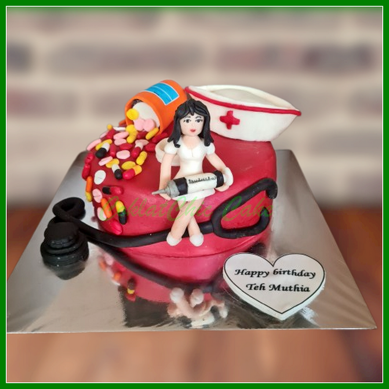Birthday Cake dengan tema Bidan, model tersebut mulai ukuran 15 cm , daftar harga kue ulang tahun https://coklatchiccake.com/daftar-harga-2