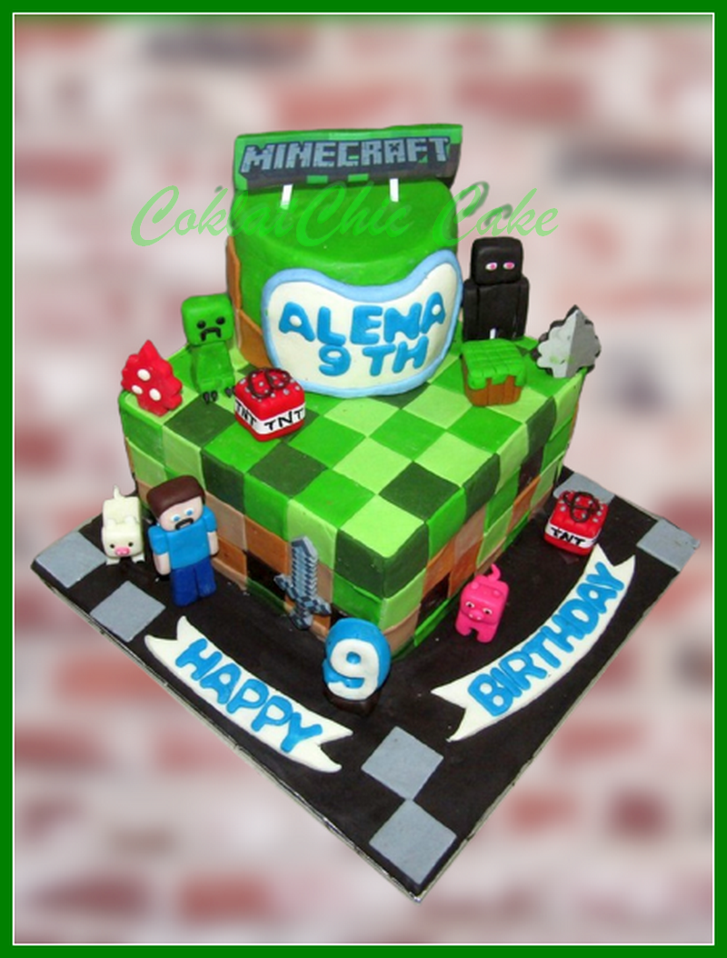 Birthday Cake dengan tema minecraft, model tersebut mulai ukuran 15 cm dan 12 cm , daftar harga kue ulang tahun https://coklatchiccake.com/daftar-harga-2