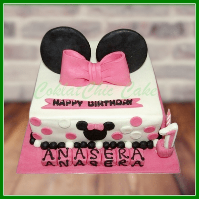 Birthday Cake dengan tema Minnie Mouse, model tersebut mulai ukuran 20 cm , daftar harga kue ulang tahun https://coklatchiccake.com/daftar-harga-2