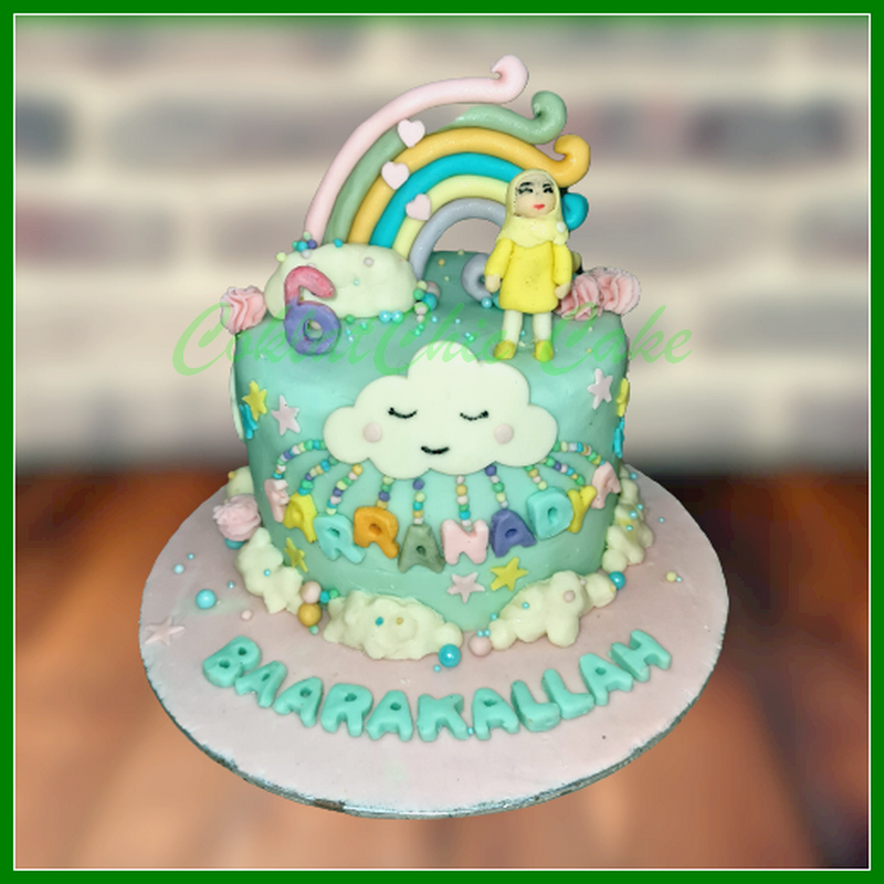 Birthday Cake dengan tema Rainbow & Clouds, model tersebut mulai ukuran 15 cm , daftar harga kue ulang tahun https://coklatchiccake.com/daftar-harga-2