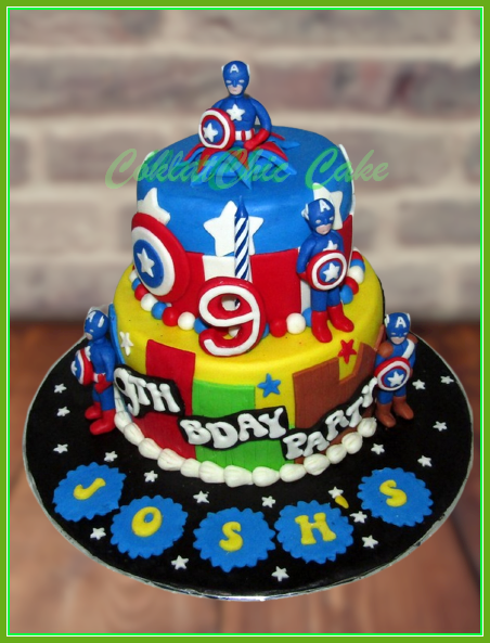 Birthday Cake dengan tema Captain America, model tersebut mulai ukuran 18 cm dan 12 cm , daftar harga kue ulang tahun https://coklatchiccake.com/daftar-harga-2