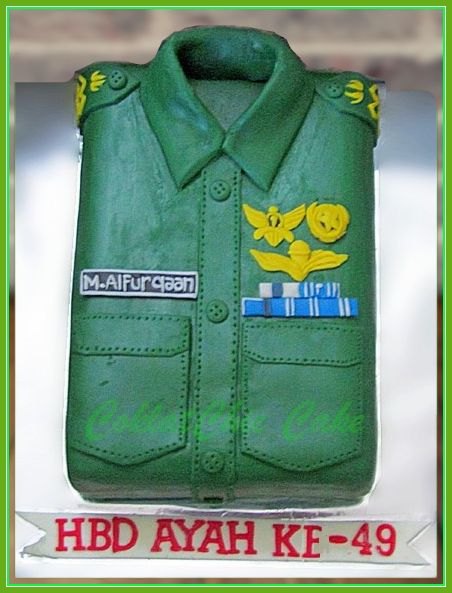 Birthday Cake dengan tema Baju Tentara , model tersebut mulai ukuran 15 cm , daftar harga kue ulang tahun https://coklatchiccake.com/daftar-harga-2