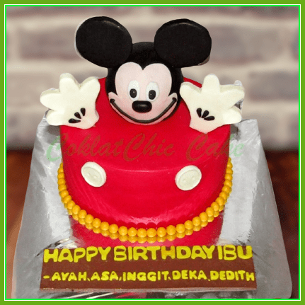 Birthday Cake dengan tema Mickey Mouse , model tersebut mulai ukuran 20 cm , daftar harga kue ulang tahun https://coklatchiccake.com/daftar-harga-2