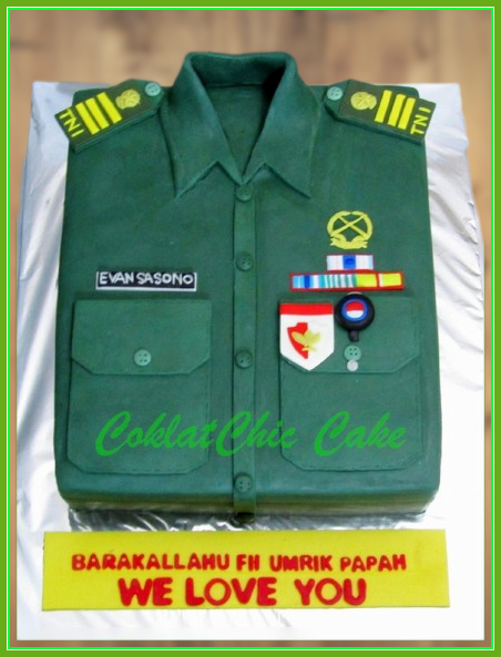 Birthday Cake dengan tema baju Tentara , model tersebut mulai ukuran 30 cm , daftar harga kue ulang tahun https://coklatchiccake.com/daftar-harga-2