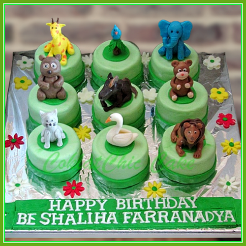 Birthday Minicake set dengan tema Animals , model tersebut mulai ukuran 6 cm , daftar harga kue ulang tahun https://coklatchiccake.com/daftar-harga-2