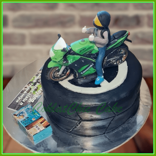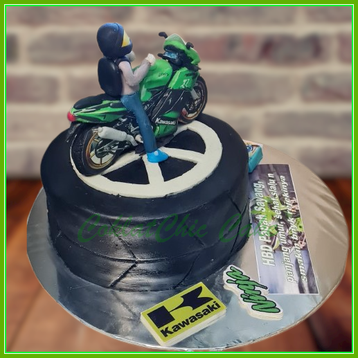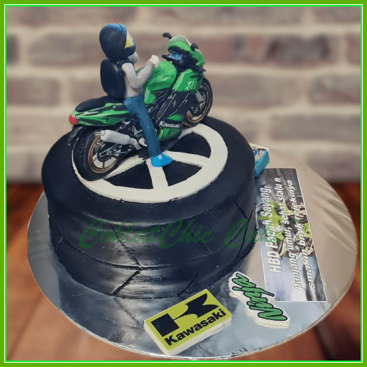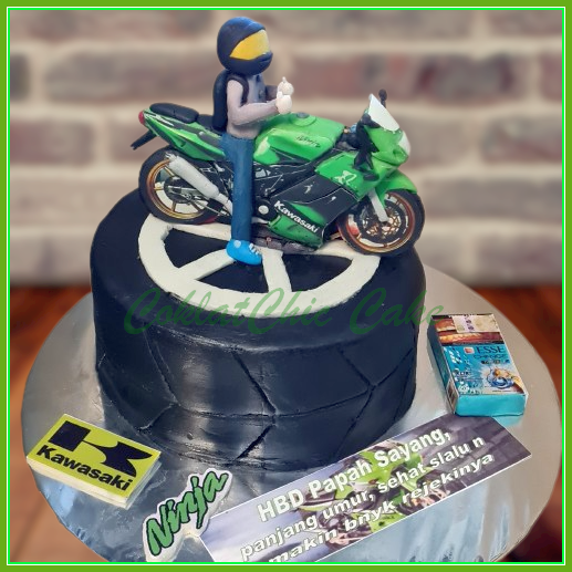 Birthday Cake dengan tema Motor Kawasaki Ninja RR150, model tersebut mulai ukuran 15 cm , daftar harga kue ulang tahun https://coklatchiccake.com/daftar-harga-2