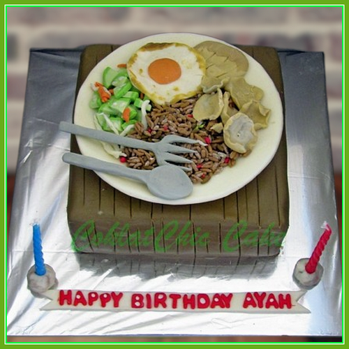 Birthday Cake dengan tema nasi Goreng, model tersebut mulai ukuran 15 cm , daftar harga kue ulang tahun https://coklatchiccake.com/daftar-harga-2