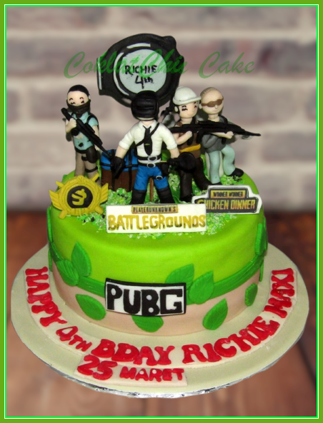 Birthday Cake dengan tema PUBG, model tersebut mulai ukuran 18 cm , daftar harga kue ulang tahun https://coklatchiccake.com/daftar-harga-2