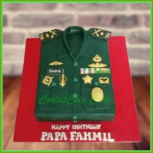 Birthday Cake dengan tema baju tentara , model tersebut mulai ukuran 20 cm , daftar harga kue ulang tahun https://coklatchiccake.com/daftar-harga-2