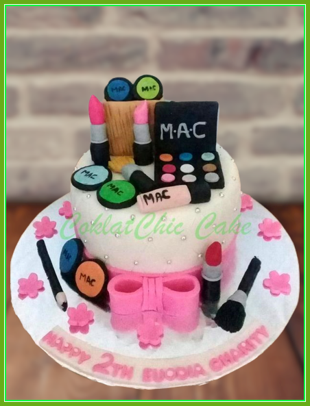 Birthday Cake dengan tema Make Up Cosmetic, model tersebut mulai ukuran 15 cm , daftar harga kue ulang tahun https://coklatchiccake.com/daftar-harga-2