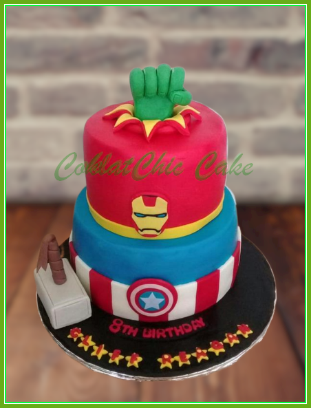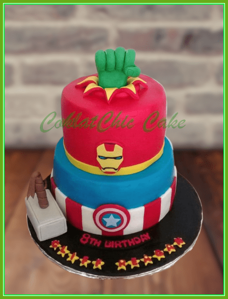 Birthday Cake dengan tema The Avengers, model tersebut mulai ukuran 20 cm dan 15 cm , daftar harga kue ulang tahun https://coklatchiccake.com/daftar-harga-2