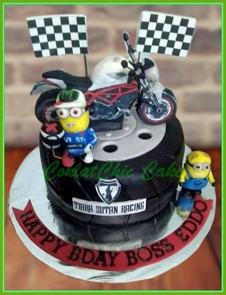 Birthday Cake dengan tema Motor dan Minion , model tersebut mulai ukuran 18 cm , daftar harga kue ulang tahun https://coklatchiccake.com/daftar-harga-2