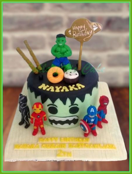 Birthday Cake dengan tema Hulk The Avengers, model tersebut mulai ukuran 18 cm , daftar harga kue ulang tahun https://coklatchiccake.com/daftar-harga-2
