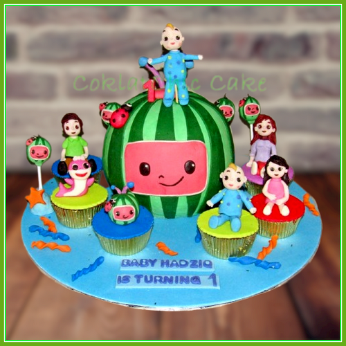 Birthday Cake dengan tema Cocomelon, model tersebut mulai ukuran 15 cm, daftar harga kue ulang tahun https://coklatchiccake.com/daftar-harga-2
