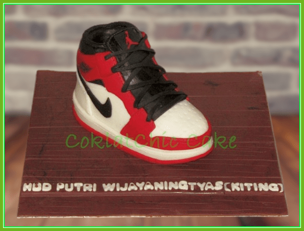 Birthday Cake dengan tema sepatu Nike Air, model tersebut mulai ukuran 15 cm, daftar harga kue ulang tahun https://coklatchiccake.com/daftar-harga-2