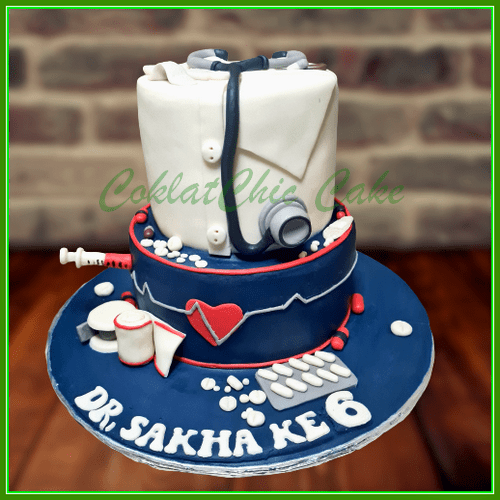 Birthday Cake dengan tema dokter, model tersebut mulai ukuran 15 cm dan 12 cm, daftar harga kue ulang tahun https://coklatchiccake.com/daftar-harga-2