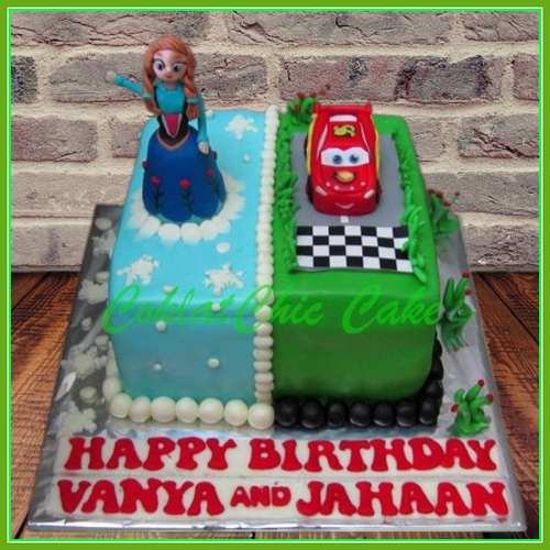 Birthday Cake dengan tema disney frozen dan disney cars, model tersebut mulai ukuran 15 cm , daftar harga kue ulang tahun https://coklatchiccake.com/daftar-harga-2