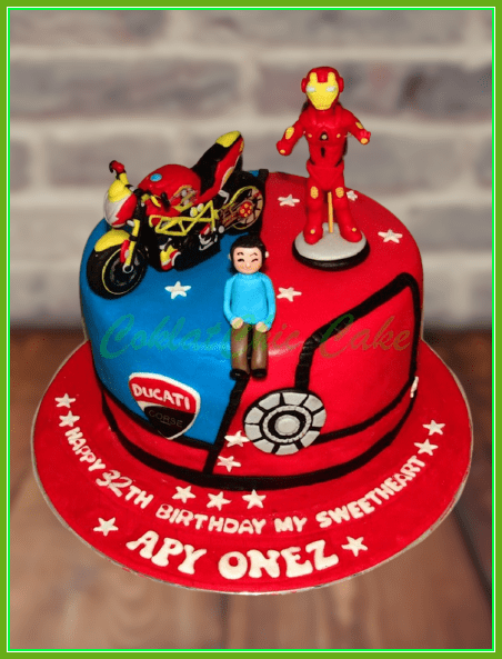 Birthday Cake dengan tema Motor Ducati Ironman, model tersebut mulai ukuran 22 cm , daftar harga kue ulang tahun https://coklatchiccake.com/daftar-harga-2