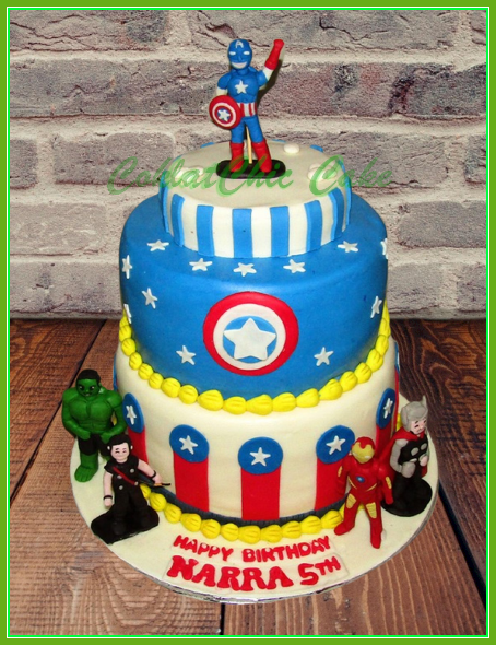 Birthday Cake dengan tema the Avengers Captain America, model tersebut mulai ukuran 22 cm dan 20 cm , daftar harga kue ulang tahun https://coklatchiccake.com/daftar-harga-2