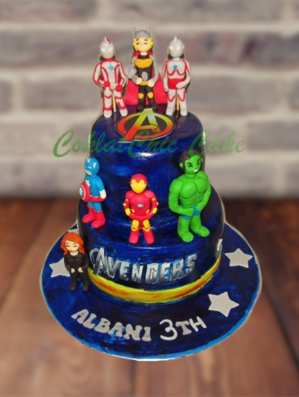 Birthday Cake dengan tema The Avengers dan Ultraman, model tersebut mulai ukuran 18 cm dan 12 cm, daftar harga kue ulang tahun https://coklatchiccake.com/daftar-harga-2