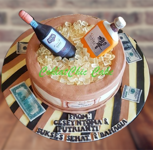 Birthday Cake dengan tema Whiskey and Wine, model tersebut mulai ukuran 35 cm , daftar harga kue ulang tahun https://coklatchiccake.com/daftar-harga-2