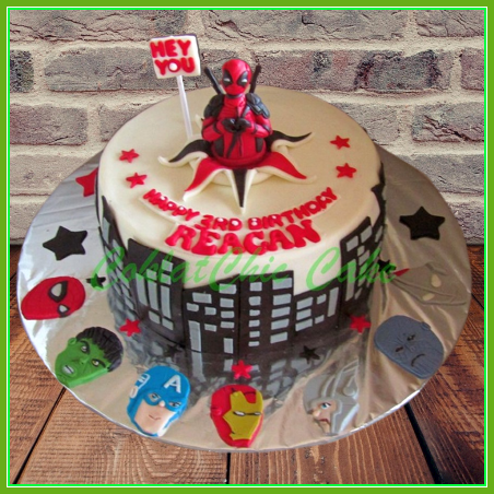 Birthday Cake dengan tema Deadpool, model tersebut mulai ukuran 22 cm , daftar harga kue ulang tahun https://coklatchiccake.com/daftar-harga-2