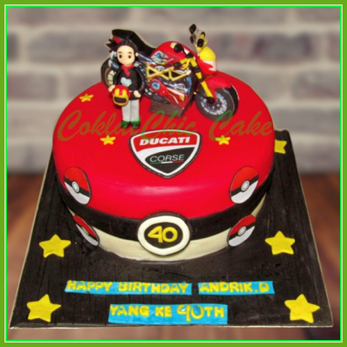 Birthday Cake dengan tema motor Ducati Ironman, model tersebut mulai ukuran 22 cm , daftar harga kue ulang tahun https://coklatchiccake.com/daftar-harga-2