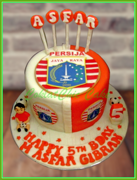 Birthday Cake dengan tema Klub Sepak Bola Persija, model tersebut mulai ukuran 15 cm , daftar harga kue ulang tahun https://coklatchiccake.com/daftar-harga-2