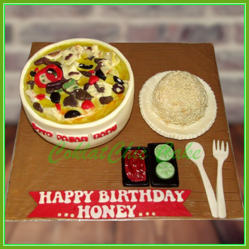 Birthday Cake dengan tema Soto Betawi , model tersebut mulai ukuran 20 cm , daftar harga kue ulang tahun https://coklatchiccake.com/daftar-harga-2