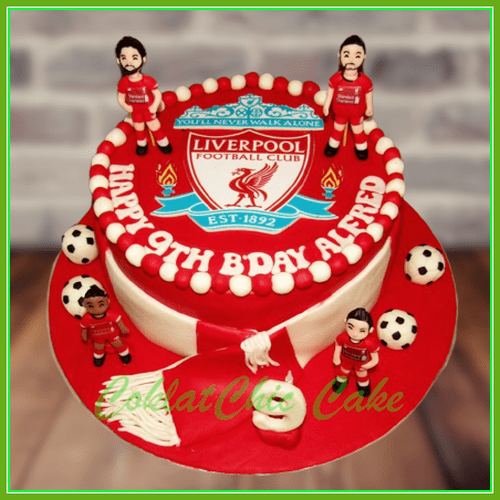 Birthday Cake dengan tema klub seepak bola Liverpool, model tersebut mulai ukuran 24 cm , daftar harga kue ulang tahun https://coklatchiccake.com/daftar-harga-2