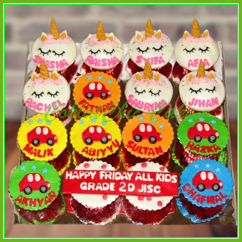Birthday Cupcake set dengan tema unicorn dan mobil , daftar harga kue ulang tahun https://coklatchiccake.com/daftar-harga-2