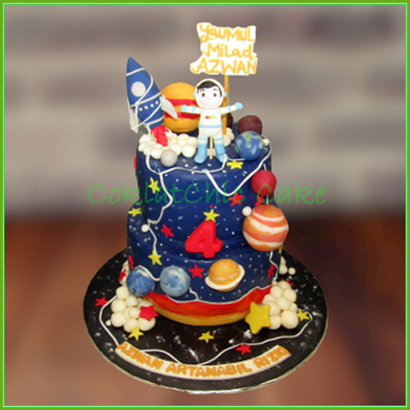 Birthday Cake dengan tema tata surya astronot, model ini mulai ukuran 15 cm dan 12 cm, daftar harga kue ulang tahun https://coklatchiccake.com/daftar-harga-2