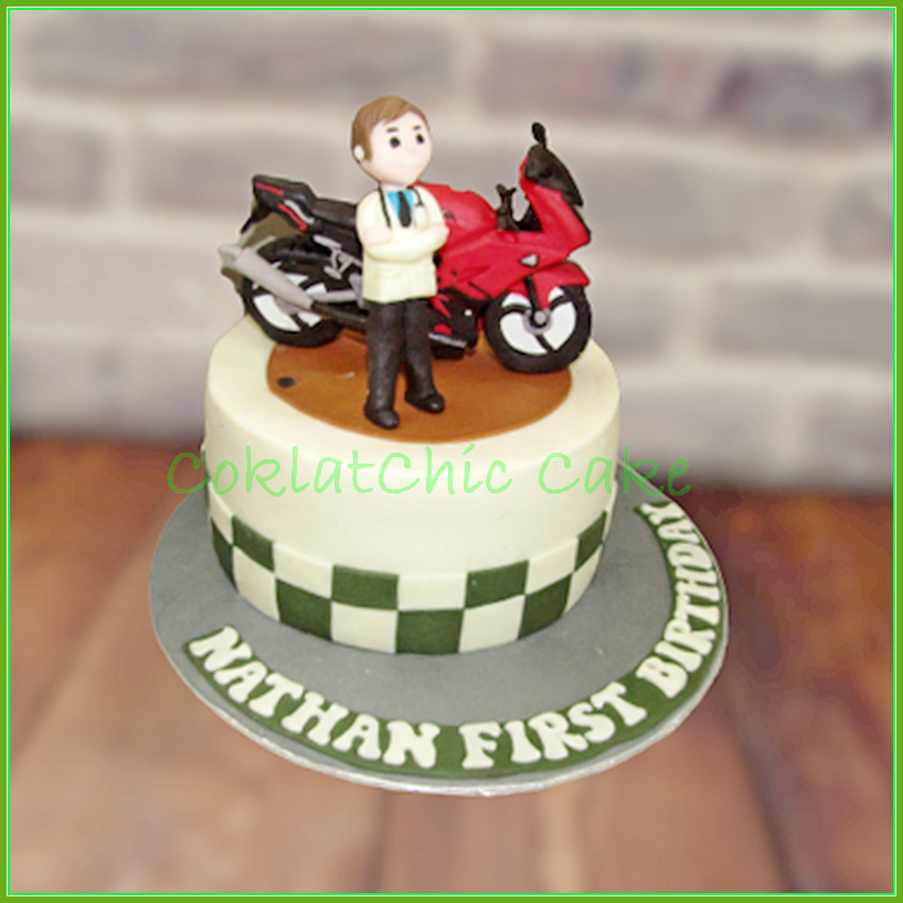 Birthday Cake dengan tema motor kawasaki Ninja, model ini mulai ukuran 18 cm, daftar harga kue ulang tahun https://coklatchiccake.com/daftar-harga-2