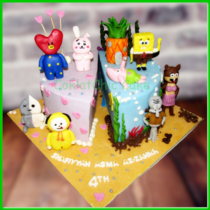 Birthday Cake dengan temaBT21 dan Spongebob, model ini mulai ukuran 22 cm, daftar harga kue ulang tahun https://coklatchiccake.com/daftar-harga-2