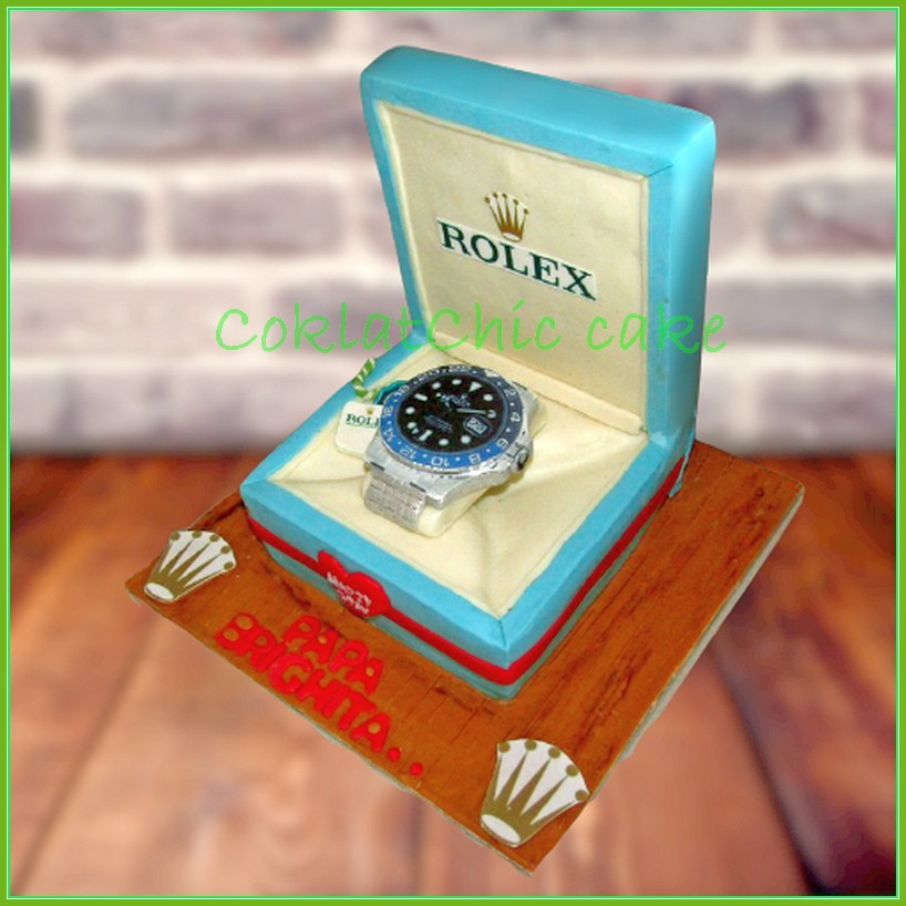 Birthday Cake dengan tema jam Rolex, model ini mulai ukuran 15 cm, daftar harga kue ulang tahun https://coklatchiccake.com/daftar-harga-2