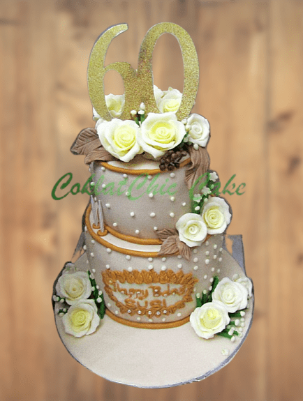 60 Birthday Cake dengan tema bunga mawar, model tersebut mulai ukuran 15 cm dan 12 cm , daftar harga kue ulang tahun https://coklatchiccake.com/daftar-harga-2
