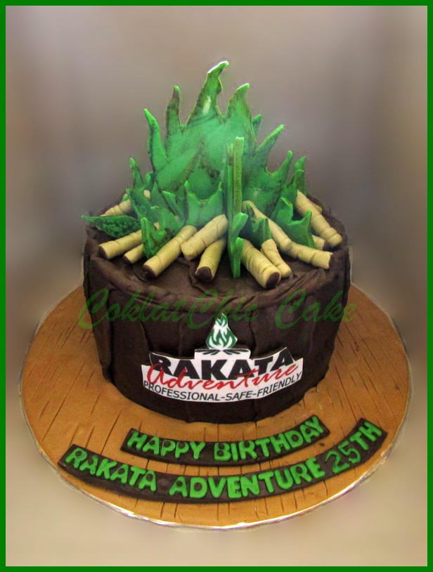 Birthday Cake dengan tema api unggun dan logo, model tersebut mulai ukuran 15 cm , daftar harga kue ulang tahun https://coklatchiccake.com/daftar-harga-2