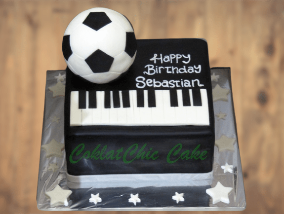 Birthday Cake dengan tema bola dan Piano, model tersebut mulai ukuran 18 cm , daftar harga kue ulang tahun https://coklatchiccake.com/daftar-harga-2