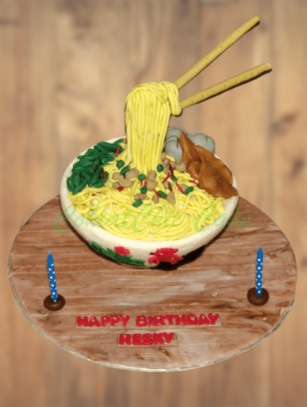 Birthday Cake dengan tema mie ayam, model tersebut mulai ukuran 18 cm , daftar harga kue ulang tahun https://coklatchiccake.com/daftar-harga-2