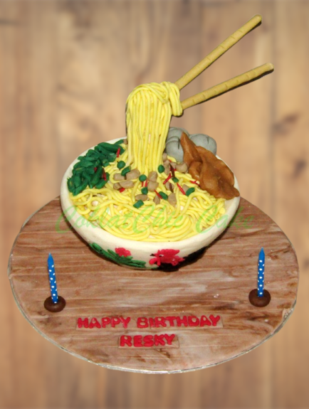 Birthday Cake dengan tema mie ayam, model tersebut mulai ukuran 18 cm , daftar harga kue ulang tahun https://coklatchiccake.com/daftar-harga-2