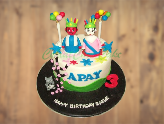 Birthday Cake dengan tema ondel-ondel, model tersebut mulai ukuran 20 cm , daftar harga kue ulang tahun https://coklatchiccake.com/daftar-harga-2